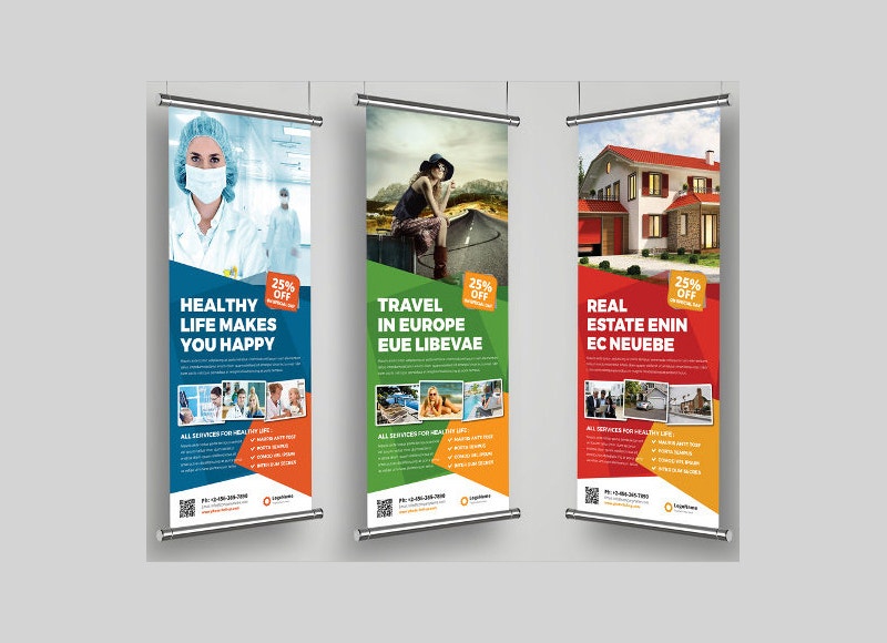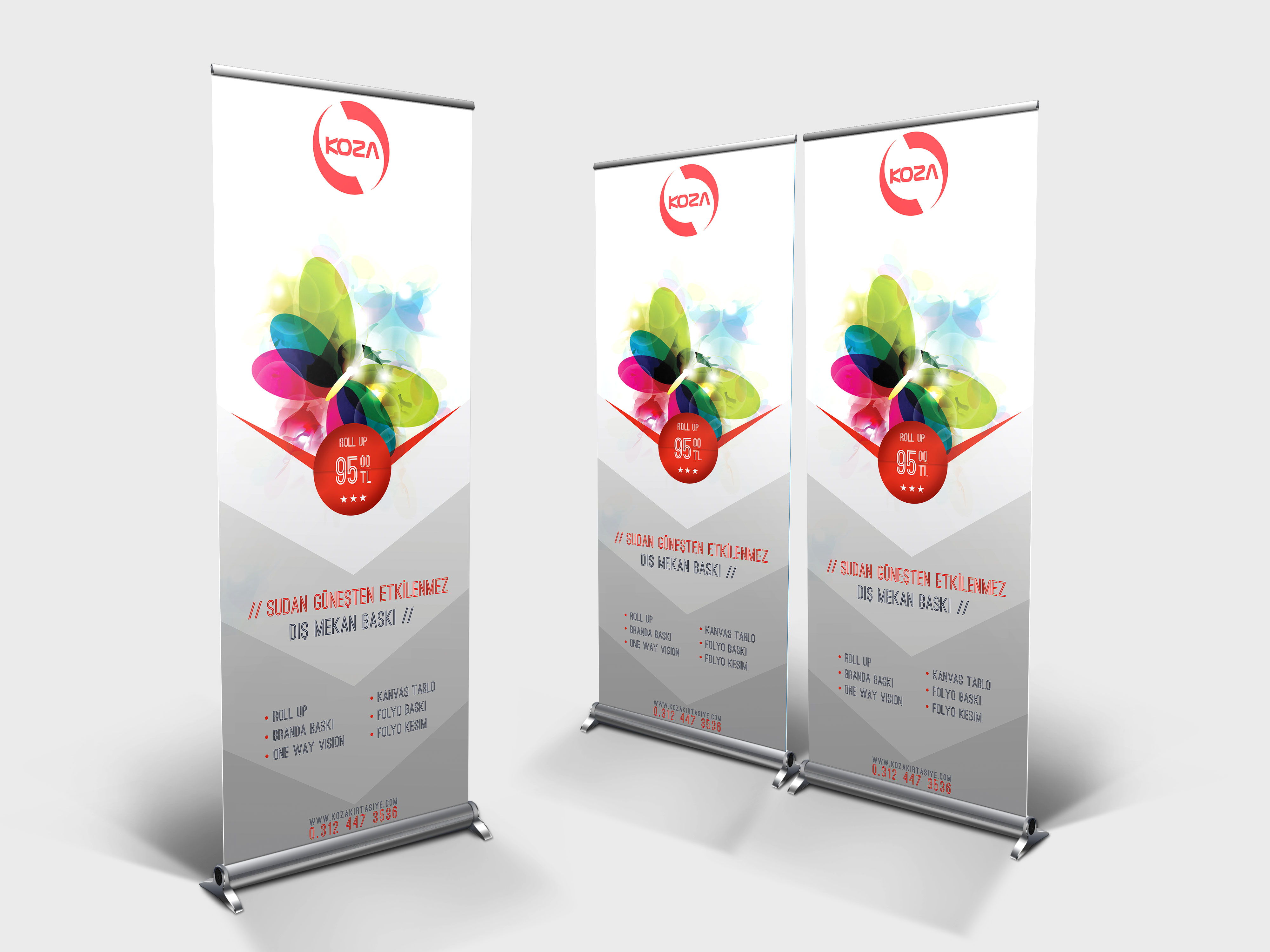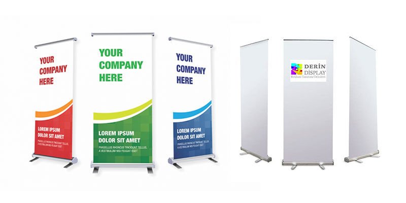 Roll up banner ölçüleri ise 80x200 cm 90x200 cm ve 100x200 cm dir.